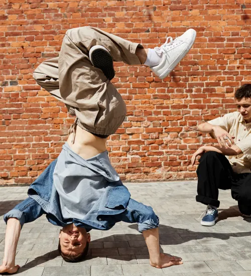 O Breaking é uma dança de rua dinâmica e acrobática executada por B-Boys e B-Girls.